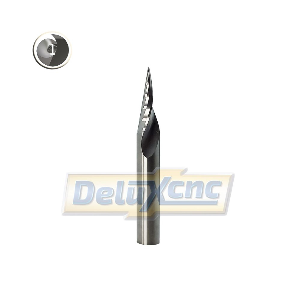 Specifikace: Průměr stopky: 3,175 mm Úhel: 30° Průměr řezné hrany: 0,3 mm Celková délka: 38 mm