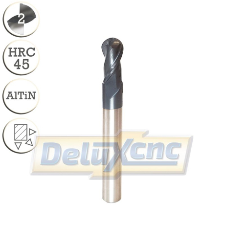 Dvojbritá karbidová fréza s ochranným povlakem AlTiN pro obecné použití. Vhodná do železa, oceli ... do tvrdosti HRC45.