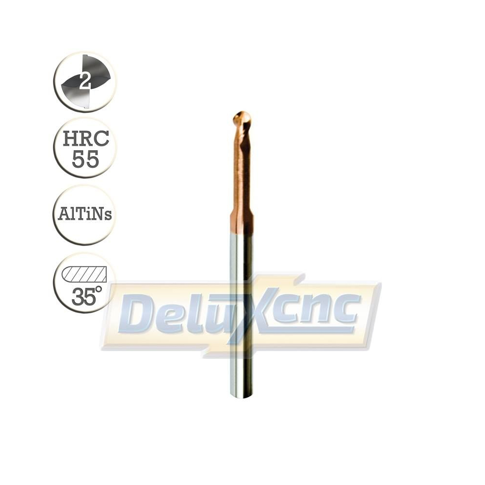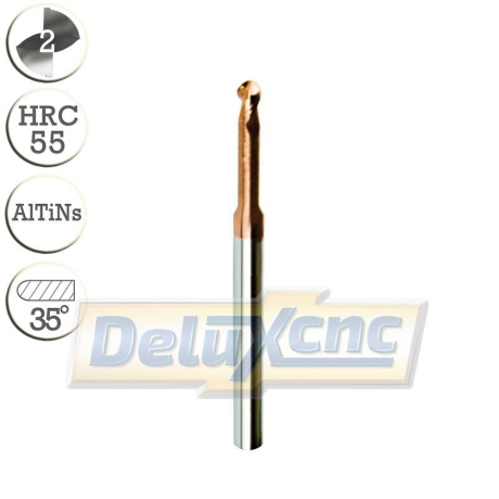 Dvojbritá karbidová kulová fréza s prodlouženým krkem a ochranným povlakem AlTiNs pro obecné použití.