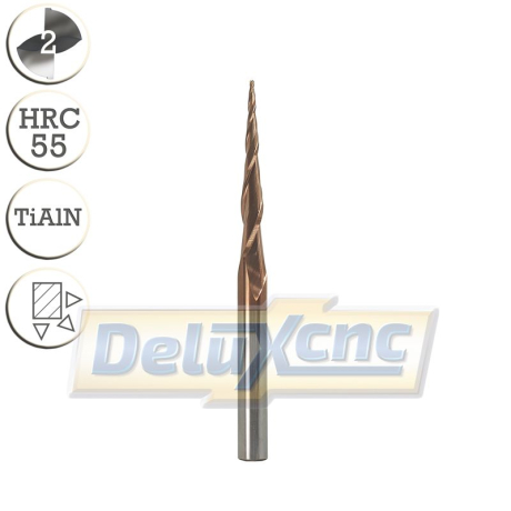 Dvojbritá karbidová fréza s ochranným povlakem TiAlN pro obecné použití. Vhodná do dreva....