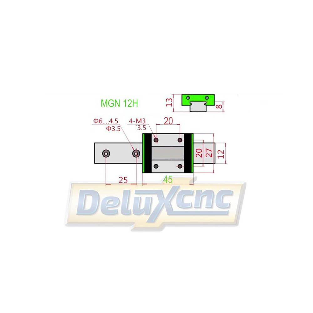 Lineární vedení MGN12 v délce 500mm s vozíkem MGN12H.