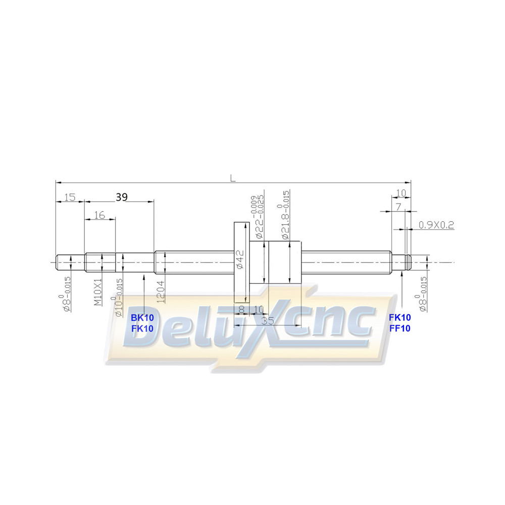 Štandardná guľôčková skrutka s presnosťou triedy C7, prispôsobená požadovaná dĺžka a možnosť opracovania konca podľa výberu zákazníka.