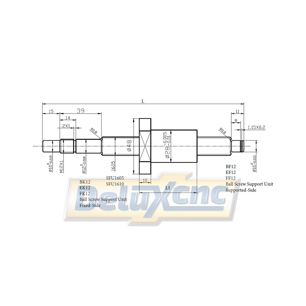 Pozor! Šruba je dodávaná bez matice (pri kúpe guľôčkovej skrutky sa odporúča odporučiť si aj maticu a my ju namontujeme na guľovú skrutku tak, aby zodpovedala tolerancii.)