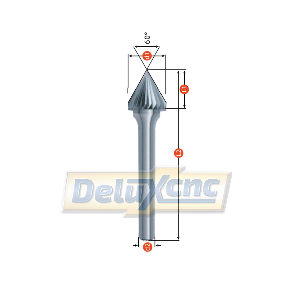 Tvrdokovová technická fréza kuželová 60° je navržena pro efektivní tvarové obrábění, fasetování a zkosení ostrých hran. Speciální kuželový tvar o úhlu 60° umožňuje přesné frézování ostrých úhlů, zářezů a malých profilů s vysokým odběrem materiálu a tvorbou kvalitního povrchu. Nástroj má řezný průměr 8 mm, tvrdokovové provedení, ideální pro obrábění oceli, mědi a podobných materiálů. Díky robustnímu materiálu a preciznímu výbrusu dosáhnete odolného, stabilního řezu s malými třískami a minimální tendencí k odskakování nástroje
