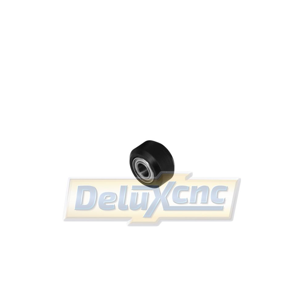 Malé POM kolečko se dvěma ložisky pro pohyb na hliníkových v-slot profilech. Vnější průměr 15,3 mm, díra v ložisku 5 mm, šířka kolečka 9 mm.