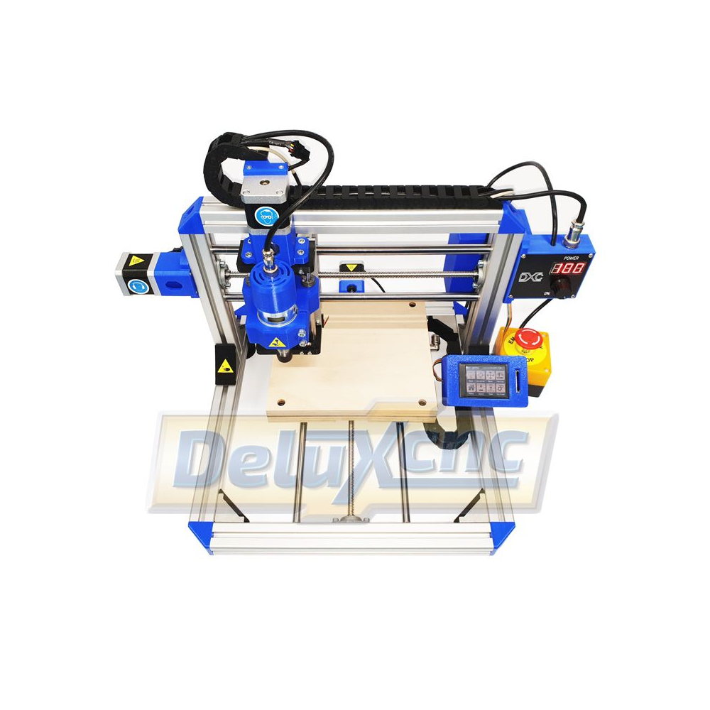 Die luftgekühlte Spindel mit einer maximalen Drehzahl von 15.000 U/min und NEMA17-Schrittmotoren sowie die stabile Konstruktion aus 30x30-Aluminiumprofilen, ergänzt durch 3D-gedruckte Kunststoffteile, verleihen dieser Maschine ausreichend Leistung zum Fräsen, Gravieren und Bohren von leicht zerspanbaren Materialien wie Holz, Kunststoffen, Leiterplatten, Nichteisenmetallen usw. Die Dreh-Linear-Bewegung wird durch Trapezgewindespindeln mit einem Gewindesteigungsdurchmesser von 8 mm und einer Steigung von 8 mm/U sowie Linearstangen mit einem Durchmesser von 12 mm realisiert, auf denen Linearlager in einem Gehäuse des Typs SC12UU/SC12LUU laufen.