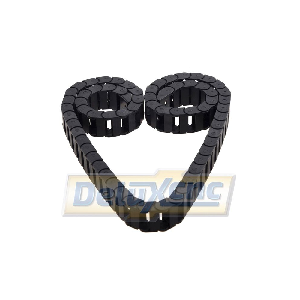 Die Energieführungskette dient zur Kabelführung und zum Schutz der Kabel vor Belastung und Beschädigung. Sie wird für bewegliche Maschinenteile verwendet. Die Kette kann an jeder beliebigen Stelle getrennt werden, um die gewünschte Länge zu erreichen. Die Kette wird mit Endkappen geliefert und hat eine Gesamtlänge von 106 cm.