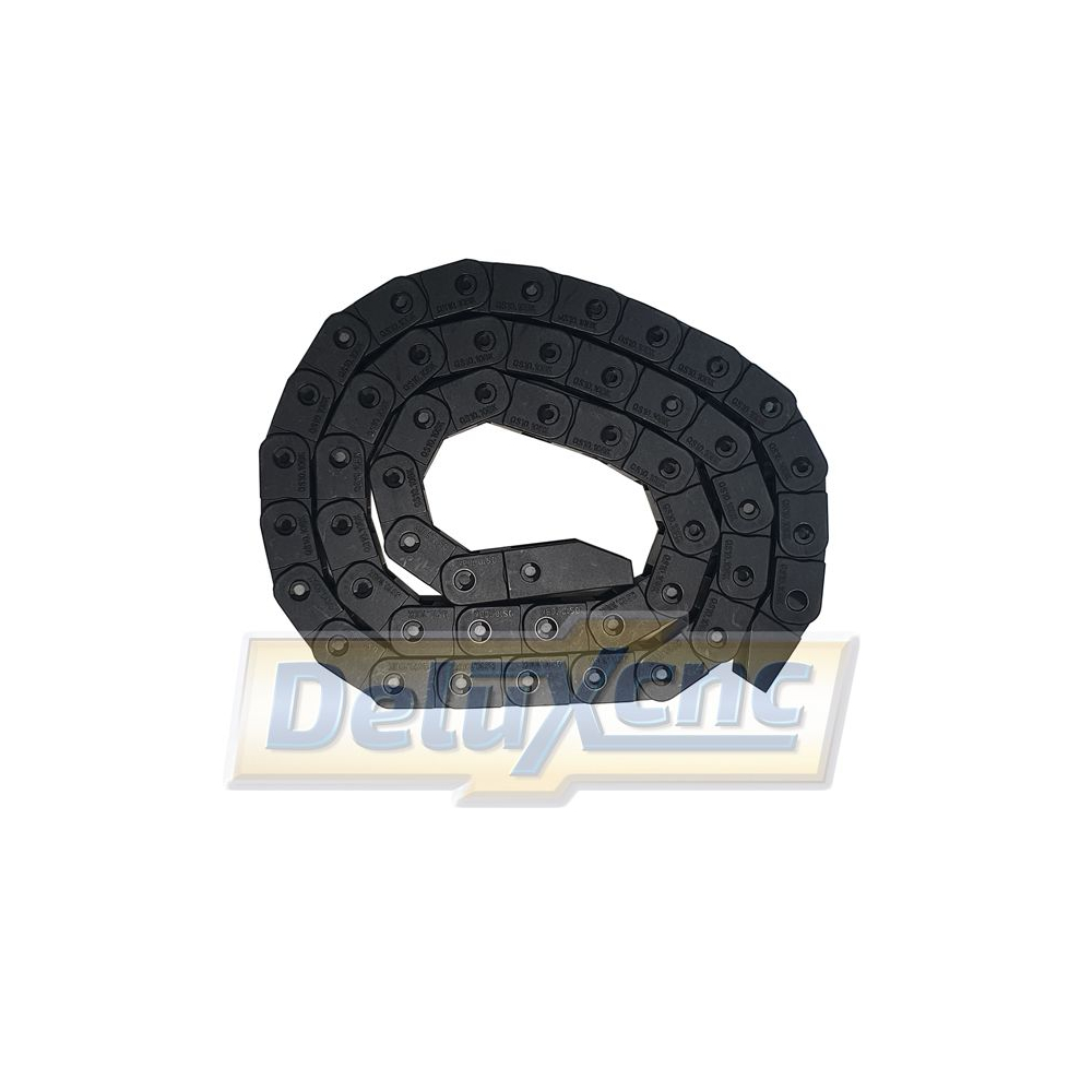 Die Energieführungskette dient zur Kabelführung und zum Schutz der Kabel vor Belastung und Beschädigung. Sie wird für bewegliche Maschinenteile verwendet. Die Kette kann an jeder beliebigen Stelle getrennt werden, um die gewünschte Länge zu erreichen. Die Kette wird mit Endkappen geliefert und hat eine Gesamtlänge von 101 cm.