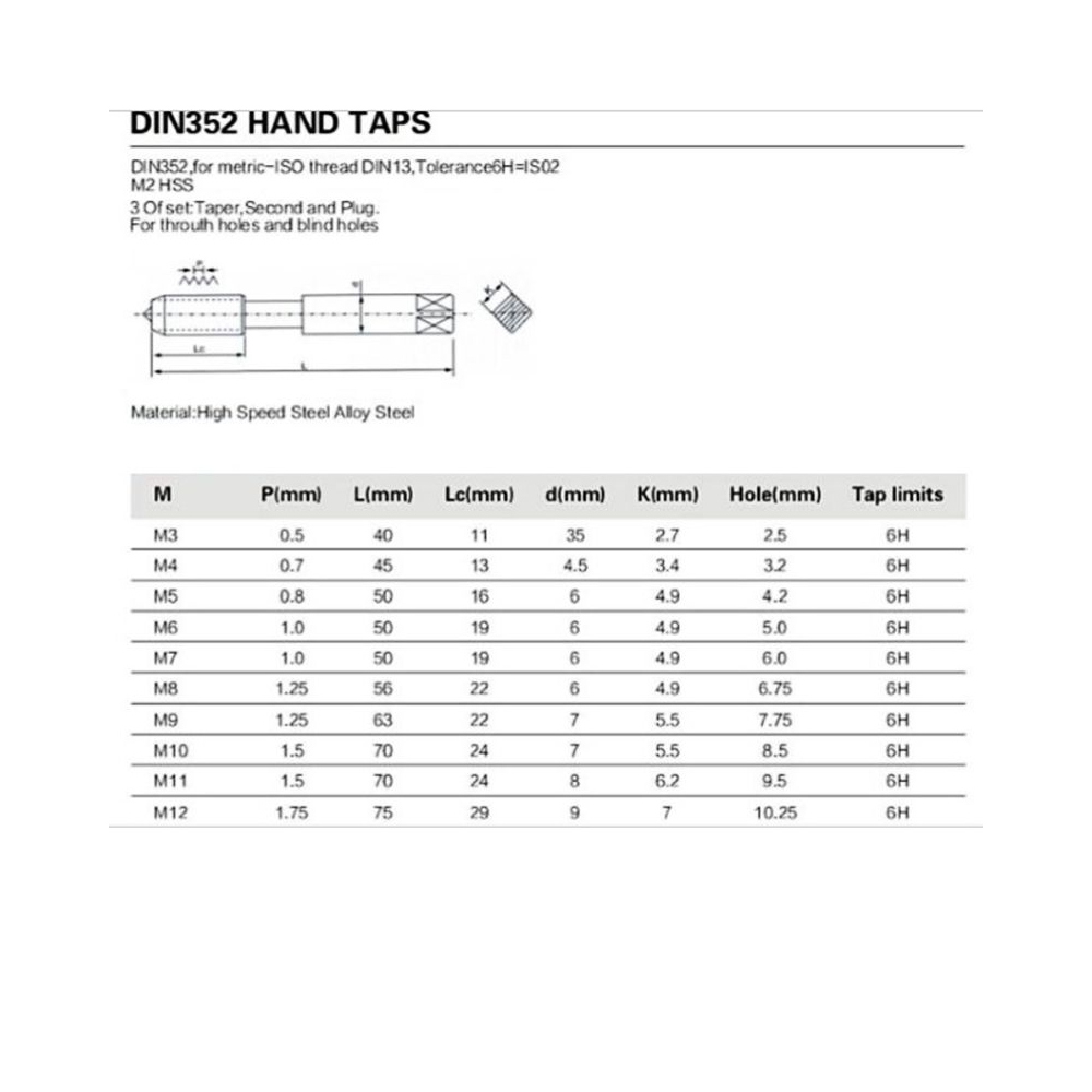 3-teiliger Gewindebohrer-Satz M3 - M12