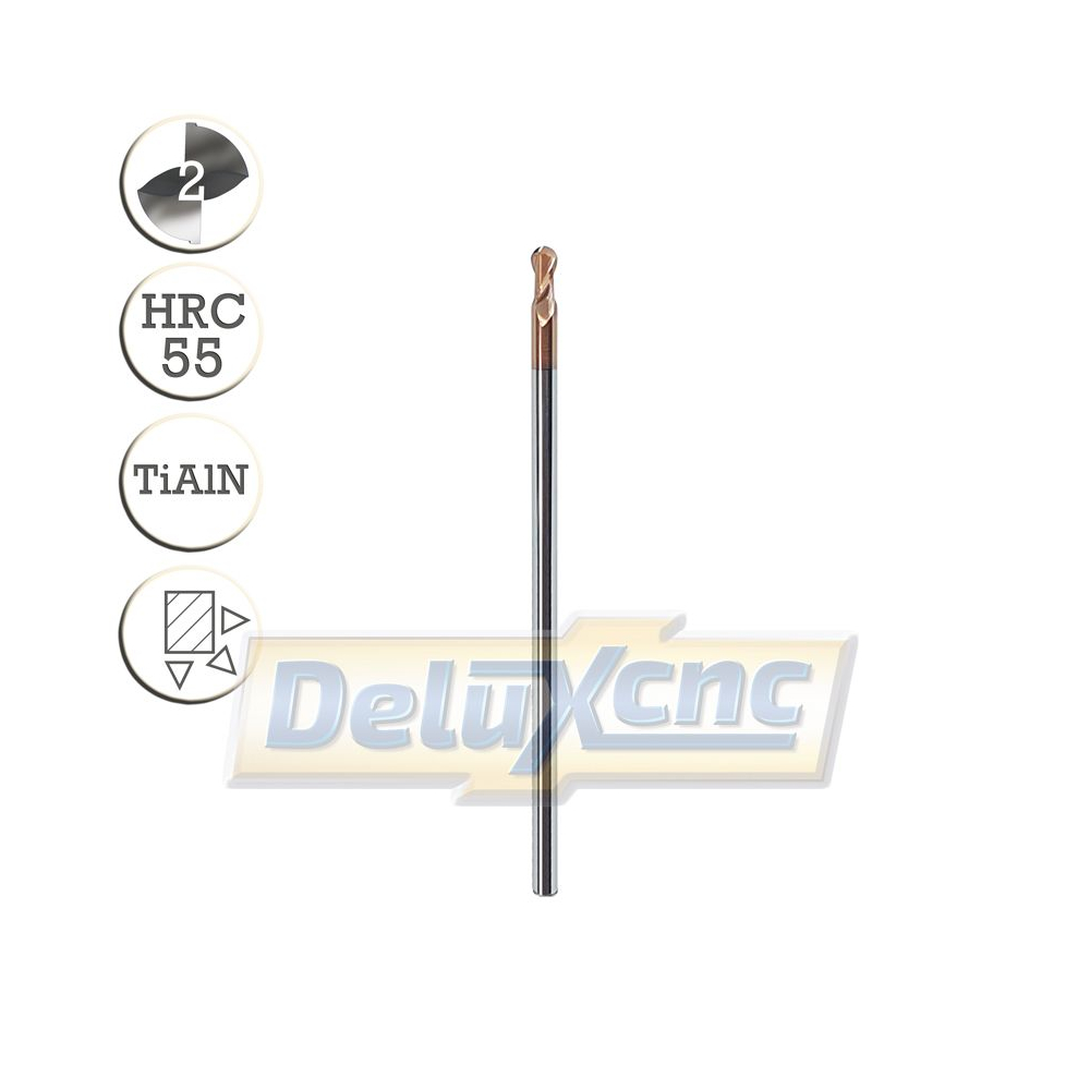 Doppelschneidige Hartmetallkugelmühle TiAlN R2mm extra lang
