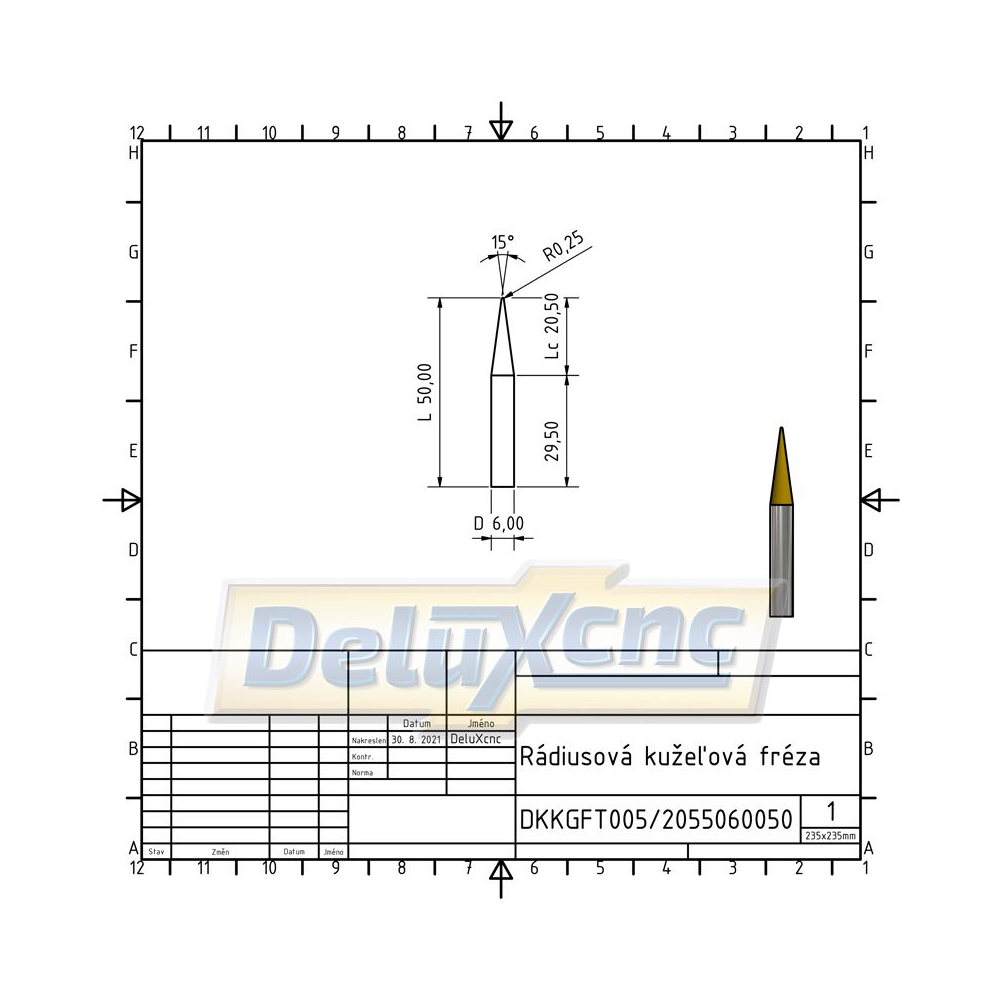 Doppelschneidiger Hartmetall-Kegelfräser mit TiAlN-Beschichtung für allgemeine Anwendungen. Geeignet für Holz und Werkstoffe bis zu einer Härte von HRC 55.