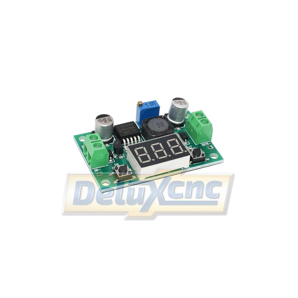 Schaltnetzteil, Spannungsregler. Ausgangsstrom: 2 A. Eingangsspannung (Vin): 3 bis 35 V DC. Ausgangsspannung (Vout): 1,5 bis 33 V DC, 3-stellige Anzeige für Eingangs- und Ausgangsspannung. Abmessungen: 61 × 34 × 12 mm