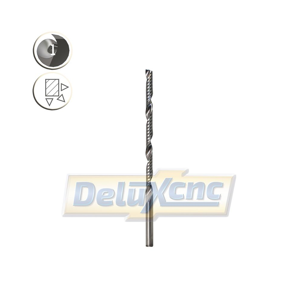 Hauptsächlich konzipiert für die Bearbeitung von Kunststoffen und weichen Werkstoffen mit begrenzten Vorschubgeschwindigkeiten aufgrund der Länge der Werkzeugschneide.