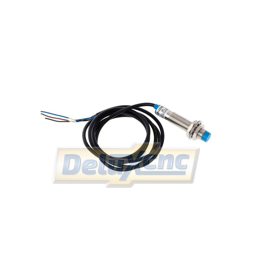 Der induktive NPN-Sensor reagiert auf einen Abstand von 4 mm. Eingangsspannungsbereich: 6–36 V. Sensordurchmesser: M12. Kabellänge: 110 cm.
