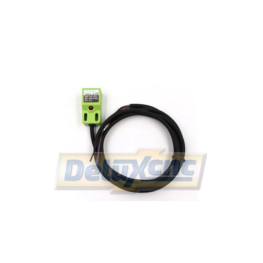 Der induktive NPN-Sensor reagiert auf metallische Objekte. Eingangsspannungsbereich: 5–30 V. Abmessungen: 18 × 18 × 36 mm. Kabellänge: 110 cm.