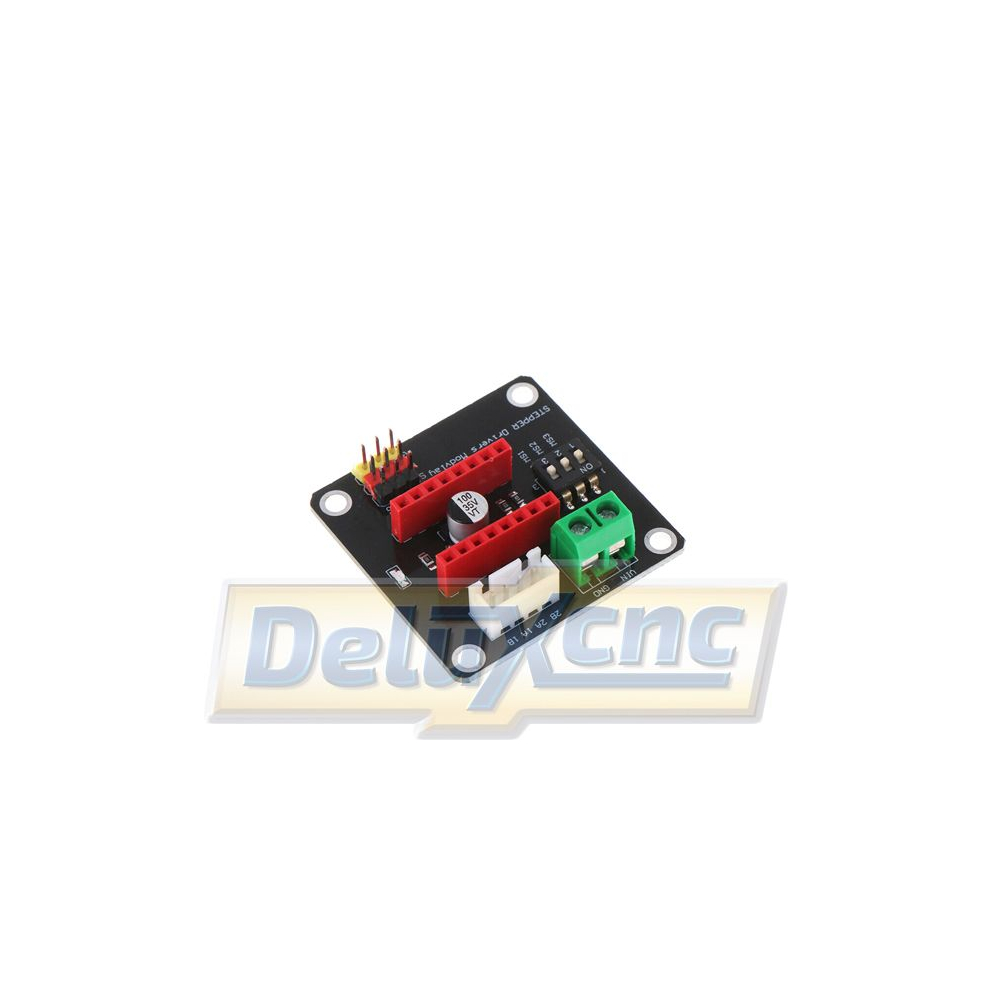 Erweiterungsmodul für Schrittmotortreiber vom Typ DRV8825 und A4988. Geeignet für kleine Automatisierungsanlagen mit CNC-Steuerung, Laser- und Graviermaschinen u. v. m. Kompatibel mit den meisten Schrittmotoren bis zur Flanschgröße NEMA 17. Schrittmodus über Mikroschalter wählbar. Breiter Eingangsspannungsbereich: 12–24 V.