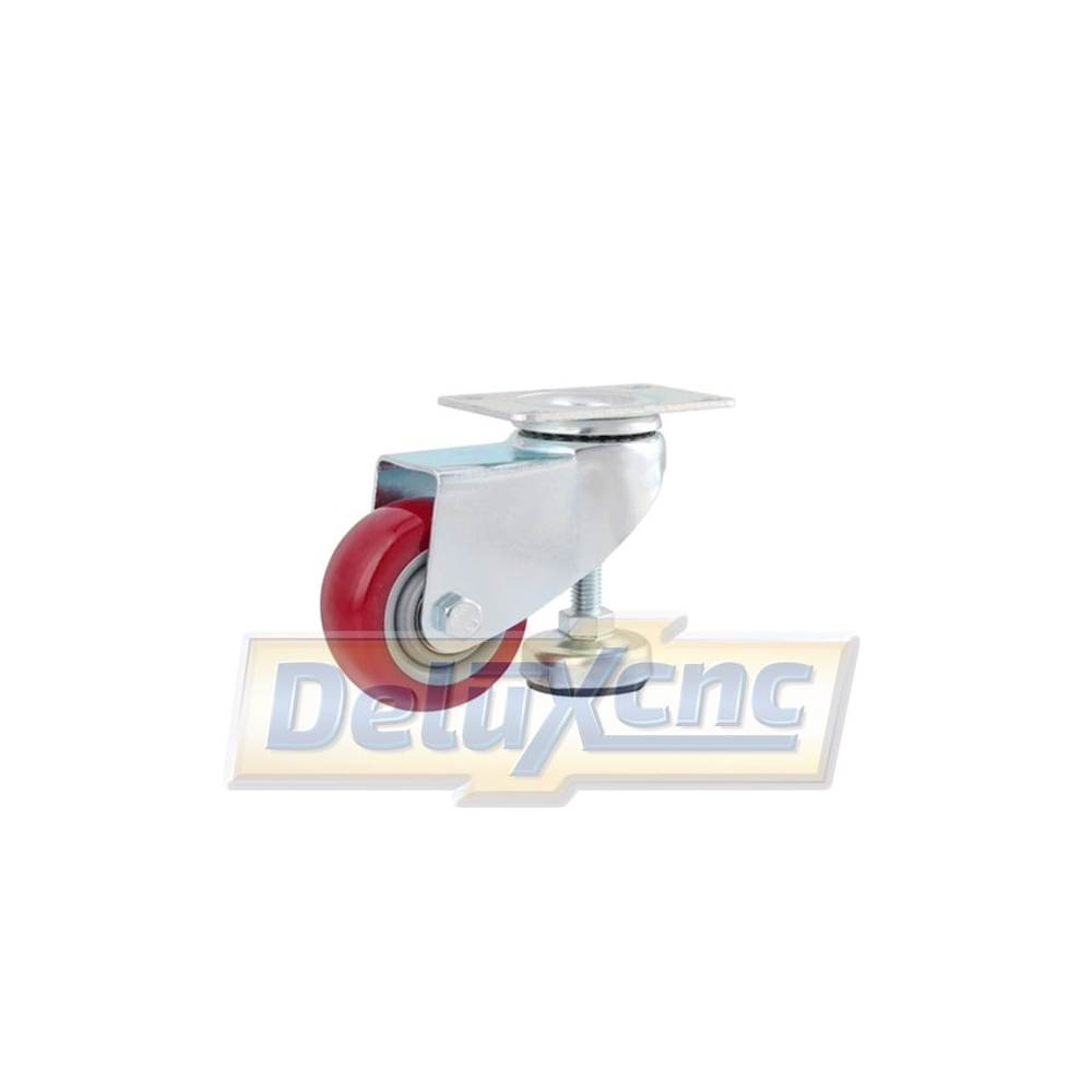 Das Rad mit 62 mm Durchmesser und verstellbarem M12-Fuß ist mit einer Schwenkplatte ausgestattet. Die Polyurethanbeschichtung der Unterseite verhindert Kratzer. Der obere Teil des Rades besteht aus Metall. Die Montageplatte hat die Maße 95 x 63 mm, der Lochabstand beträgt 75 x 45 mm. Das Rad hat eine Tragfähigkeit von 65 kg.