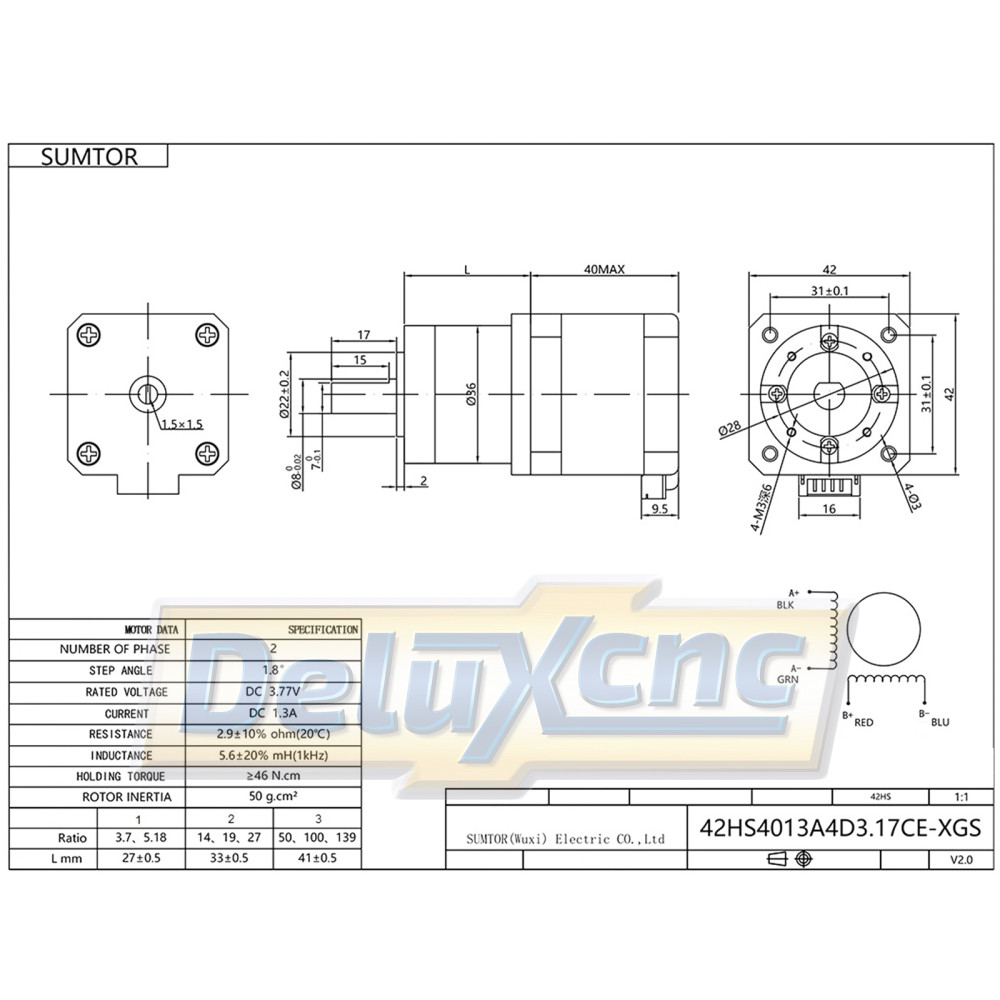 Model: 42XG Gear ratio: 5:1, 10:1, 20:1, 50:1, 100:1 Nominal load: 4 N.m Maximum load: 15N.m...