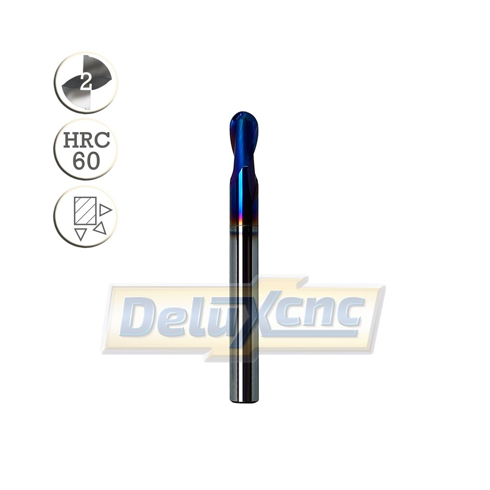 2 Flutes TiAlN F-NaNo Blue Coated Ultra Micro Grain Carbide for high hardened steels up to HRC62.