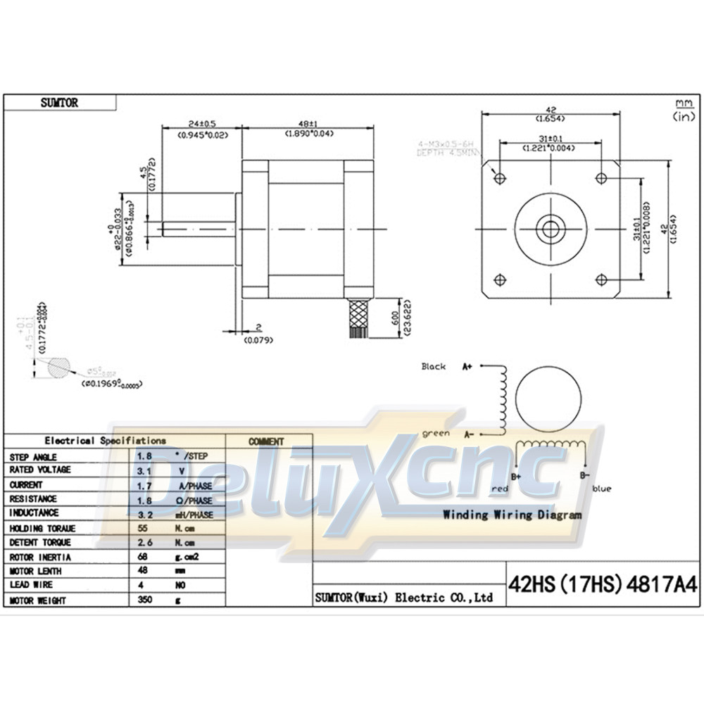 Step angle: 1.8 degrees