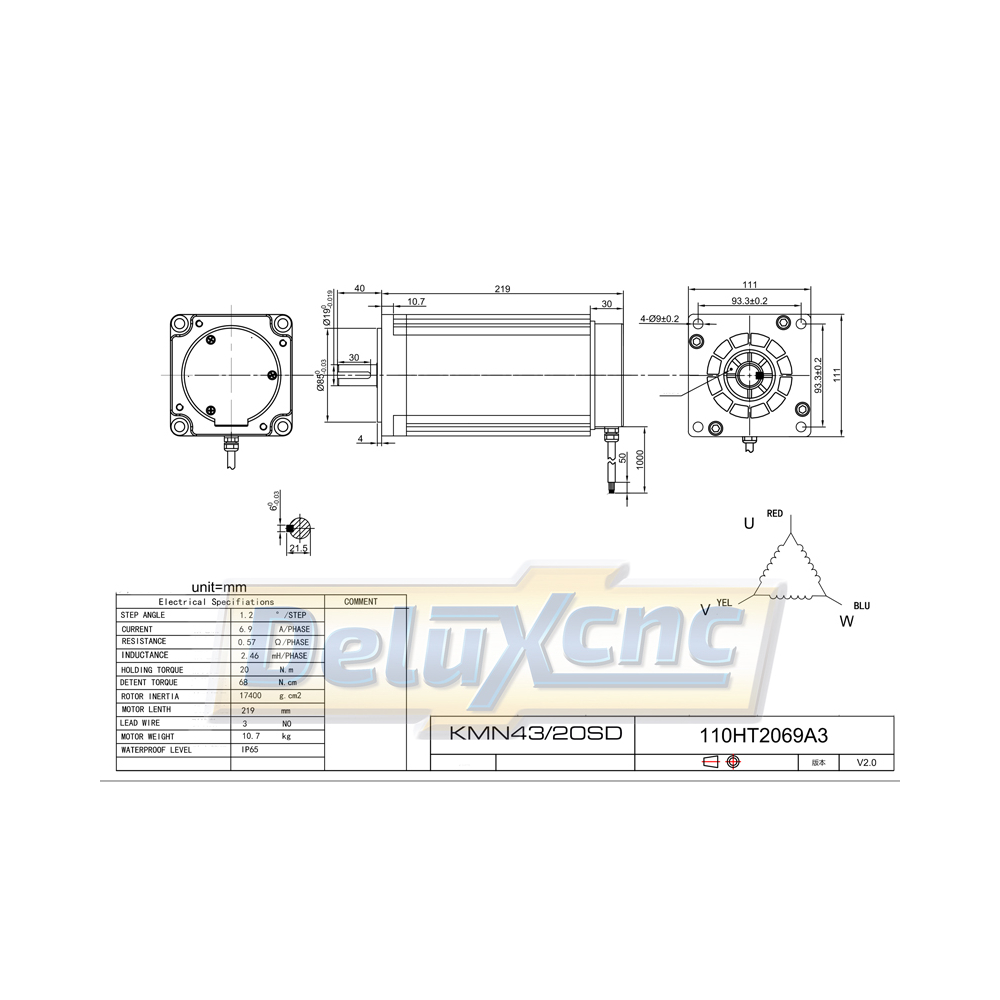 Model: 110HT2069A3-MG + 3DM2080 Number of phases: 3 Phases Step angle: 1.2 ° Current: 6.9A...