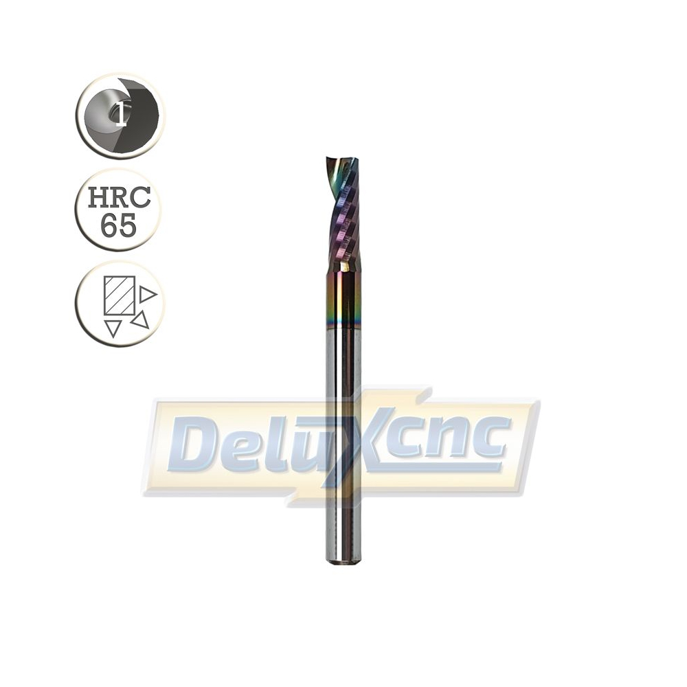 Tvrdokovová jednobritá fréza s DLC povlakom ("diamond like carbon - diamontu podobný uhlík"). DLC povlaky sa vyznačujú vysokou tvrdosťou a extrémne nízkym súčiniteľom trenia, vďaka čomu sa vyznačujú vysokou kĺzavosťou a oteruvzdornosťou, čo prináša enormné zníženie strát trením.