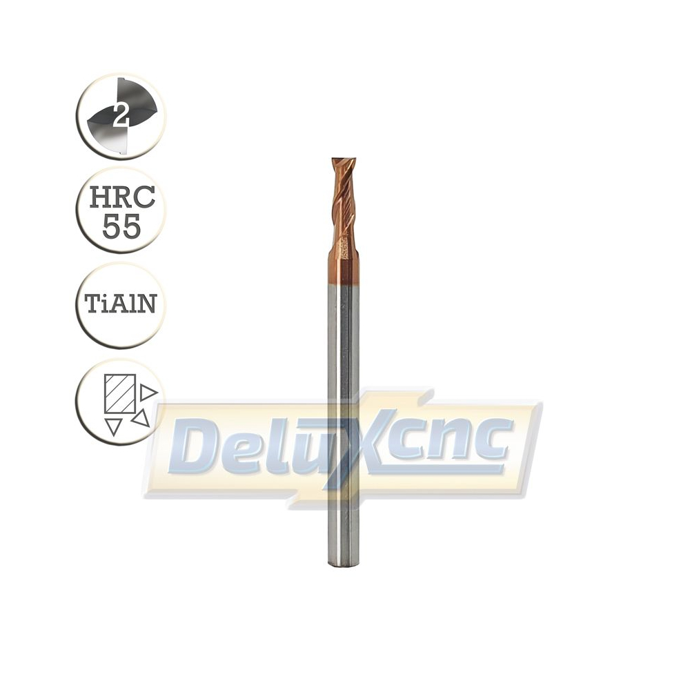 Dvojbritá karbidová fréza s ochranným povlakom TiAIN na všeobecné použitie. Vhodná do železa, ocele do tvrdosti HRC55.