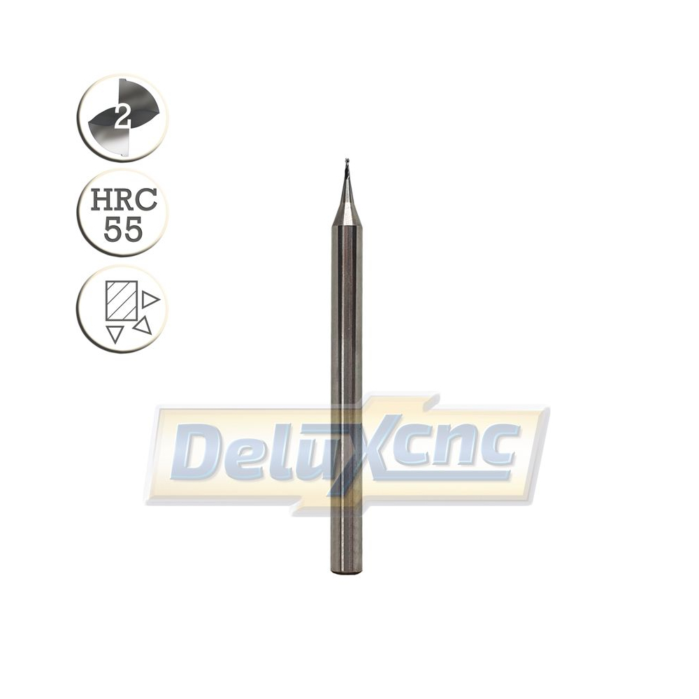 Dvojbritá karbidová guľová mikro fréza vhodná na opracovanie hliníka a neželezných kovov do tvrdosti HRC55.