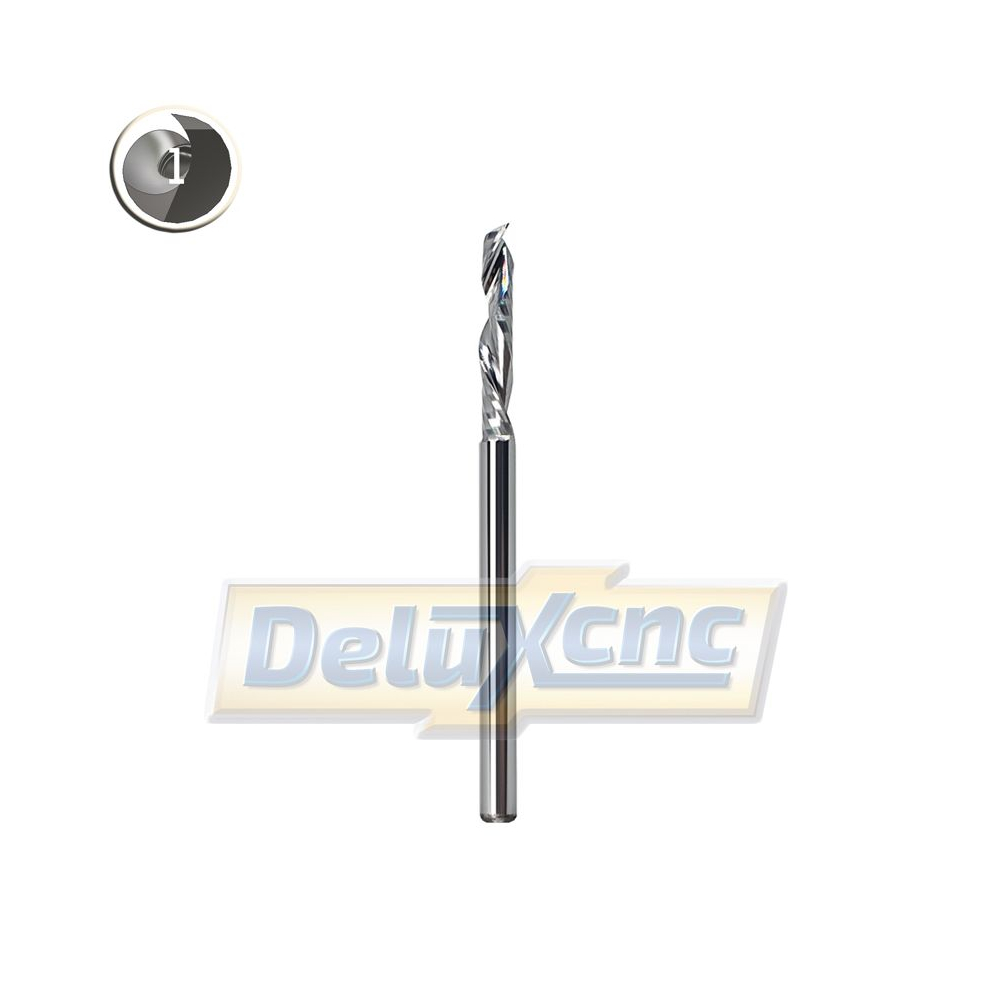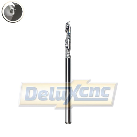Jednozubá špirálová fréza má polené ostrie, v hornej časti s negatívnym sklonom a v dolnej časti s pozitívnym sklonom. Tento typ ostrenia frézy je ideálny pre frézovanie všetkých materiálov. Výhodou je čistý rez bez otrepov na hornej i dolnej strane rezaného materiálu. Určená pre použitie na CNC obrábacích centrách aj ručných horných frézkach.