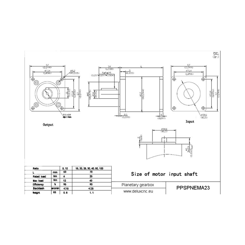 Planétová prevodovka s prírubou NEMA23 pre krokové motory s primerom hriadeľa 8mm (dĺžka hriadeľa cca 9mm). Presná ekonomická planétová prevodovka ku krokovým motorom s veľkosťou príruby 57mm.