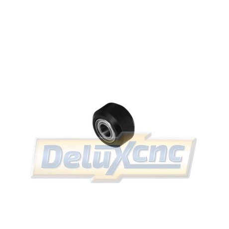 Malé POM koliesko s dvoma ložiskami pre pohyb na hliníkových v-slot profiloch. Vonkajší priemer 15,3 mm, diera v ložisku 5 mm, šírka kolieska 9 mm.